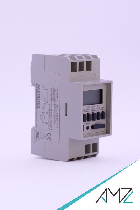 Programador horário semanal com 16 programas e intervalo de ajuste de 1 minuto. Para montagem em trilho DIN. Alimentação 220VCA e saída relé reversível para 16A. Com display de cristal líquido (LCD). Utilizado para acionar equipamentos convencionais automaticamente, apenas escolhendo os horários e dias da semana para ligar e desligar. Ideais para poupar energia elétrica durante períodos em que estes equipamentos, estando ligados, se tornam desnecessários. Bateria substituível!! Por exemplo: Na iluminação de out-door , bombas de piscinas , controle de irrigação , sirenes de aviso de turno , entre muitas outras aplicações.
