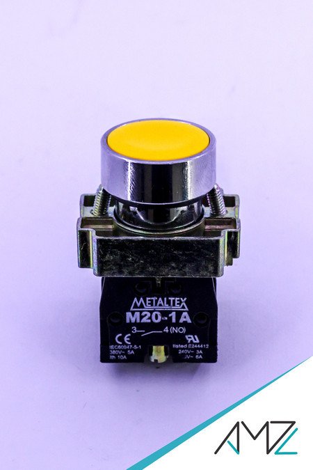 PULSADOR FACEADO 22MM METAL – AMARELO – 1NA – METALTEX – M20AFR-Y-1A